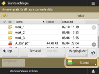 (Start). Efter att alla original har scannats, tryck på <Starta lagring> för att spara filen.