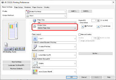 Replace the paper that is loaded with paper of the size you want to print on. Match [Output Size] in the printer driver with the size of paper to print on.