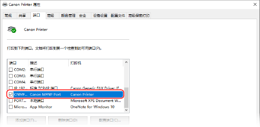 如果更改了机器的 IP 地址所需的操作取决于所使用的端口。 如果在 [描述] 中显示 [Canon MFNP Port],只要机器和计算机属于同一子网,便会保持连接,因此无需在计算机上进行任何操作。 如果在 [描述] 中显示 [Standard TCP/IP Port],则必须添加新端口。 添加端口 |