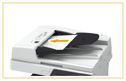 请勿在原稿输出托盘中放置物品,否则可能会损坏原稿。 为防止输稿器内部卡纸,请勿放置以下原稿:起皱、折皱、卷曲、打卷或破损的纸张 复写纸、覆膜纸、薄半透明纸、薄纸或透明胶片 已装订或带纸夹的纸张 使用热转印打印机打印过的纸张 |