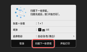 显示 [扫描下一份原稿。扫描完成后,按[开始打印]。] 时,将下一个护照放置在稿台玻璃上,然后按下 [扫描下一份原稿]。