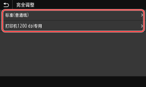 要使用Superfine功能在普通纸上打印,按顺序先后使用 [标准(普通纸)]* 和 [打印机1200 dpi专用]* 进行纠正。