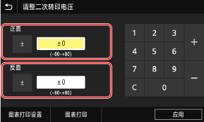 按下 [仅正面] 或 [双面] 选择想要调整二次转印电压的纸张面。