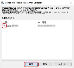 将在 [Canon MF Scan Utility] 主对话框上的 [产品名称:] 中显示添加的机器。
