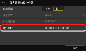 当机器连接到有线局域网时,可以查看机器设置的 MAC 地址。