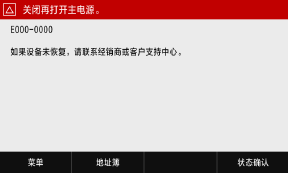 如果机器因故障而无法正常操作,触摸面板显示屏幕上显示一条信息。根据所显示的信息查阅参考源。