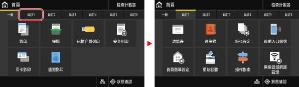 輕按索引標籤時,將顯示所選索引標籤的畫面。