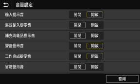 設定按下控制面板的按鍵和按鈕時是否發出聲音。