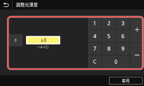 根據紙張而定,如果該模式的值增加,可能會發生卡紙。如果將值減少,影像品質可能會受到不良影響,或者是碳粉可能無法正確印製在影像上。