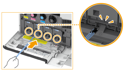 | 將清潔桿插至孔洞底部,然後輕輕來回移動。 將清潔桿插入全部四個孔洞進行清潔。 |