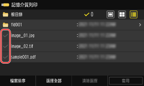 * 只能同時選擇同一個資料夾中的檔案。如果改變資料夾,則會取消選擇檔案。