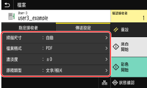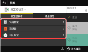 如果傳送時的目的地由於傳送功能的驗證設定而受到限制,則您無法指定其他目的地。如需詳細資訊,請聯絡管理員。