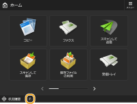 <ホーム>画面は、を押すと表示されます。<ホーム>画面には、各機能への「入口」ともいえる機能ボタンが一覧で表示されます。<ホーム>画面に表示される項目