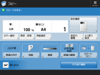 <ホーム>画面で機能ボタンを押すと、コピー、ファクス、スキャンといった主要な機能を使うための「基本画面」が表示されます。基本画面は機能によって表示も設定できることも異なりますが、いずれの機能も利用シーンに合わせて使いやすくすることができます。基本画面をカスタマイズする