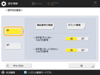 本機に登録したユーザーに部門IDが設定されているか確認してください。ローカルデバイスにユーザー情報を登録する 部門別ID管理はローカルデバイスに登録されたユーザーのみ有効です。 Administrator権限を持つユーザーでログインすると、システム管理者IDと暗証番号が自動的に付与され、部門IDとして管理されます。 コピーカードリーダーで部門別ID管理をしている場合は、カードに割り当てられた部門IDを使用します。このため、部門IDの登録はできません。 |