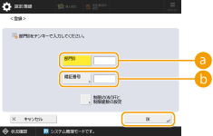 2 | <登録>を押す ![]() 部門IDの設定情報を編集するには 編集したい部門IDを選び、<編集>を押して編集画面を表示します。 部門IDの設定情報を削除するには 削除したい部門IDを選び、<削除> <はい>を押します。 |