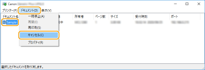 リストに表示がない文書は、すでに本機にデータが送られているため印刷を中止することはできません。