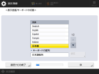 画面に表示させる言語を選びます。言語によっては、文字を入力するときに表示されるキーボードの配列を変更できます。 ![]() ![]() 言語を選び、<OK>を押します。 キーボードの配列を変更する場合は、<設定>を押して配列の種類を選び、<OK>を押します。 表示言語をひんぱんに切り替える場合は、切り替え用のボタンを表示させておくと便利です。表示言語を切り替える | |