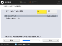 DNSサーバーアドレスやDNSのホスト名/ドメイン名などを設定します。 ![]() ![]() <プライマリーDNSサーバー>、<セカンダリーDNSサーバー>を押して、DNSサーバーのIPv4/IPv6アドレスを入力し、<次へ>を押します。 DNSサーバーアドレスの設定などについて詳細は、DNSの設定をするを参照してください。 ![]() ![]() <ホスト名>を押して本機の名称(ホスト名)を、<ドメイン名>を押して本機が属するネットワークドメイン名を入力し、<次へ>を押します。 IPv4とIPv6が同じ設定になる場合は、<IPv4と同じホスト名/ドメイン名を使用>の<ON>を押してください。 ![]() ![]() DNSの動的更新で自動登録する場合は、<DNSの動的更新>を<ON>にして、<OK>を押します。 <IPv6>の<DNSの動的更新>を<ON>にした場合は、自動登録する項目を<ON>にします。 | |