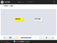 ファクス機能を使うために必要な設定を行います。 ![]() ![]() ファクス番号を入力し、<次へ>を押します。 ファクスの設定について詳しくは、ファクスの設定をするを参照してください。 ![]() ![]() <設定>を押してユーザー略称を入力し、<次へ>を押します。 ![]() ![]() 回線種類を選び、<次へ>を押します。 ![]() ![]() ファクス機能のみ使う場合は<自動受信>、電話機やハンドセットを接続しているときは<FAX/TEL切替>を押し、<OK>を押します。 | |