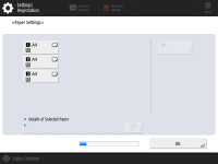 Check that the paper loaded in the drawers is correctly specified. ![]() ![]() If the paper sizes are correct, press <OK>. For information on the screen and the instructions on how to change the settings, see Specifying Paper Size and Type in the Paper Drawer. If you are not logged in as an administrator, proceed to Step 10. | |