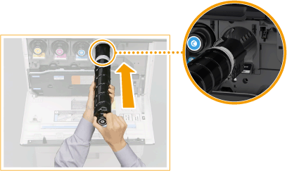 Tenez la cartouche de toner, surface plate de son extrémité vers le bas, et faites glisser la cartouche dans l'unité principale aussi loin que possible.