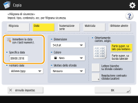 2 | Selezionare le date da incorporare. ![]() Le date impostate nella macchina vengono visualizzate in <Specifica data>. Per incorporare altre date, immetterle utilizzando i tasti numerici. |