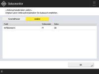 Sie können die verbleibende Menge an Verbrauchsmaterialien über die Remote UI prüfen. Überprüfen des Gerätestatus |