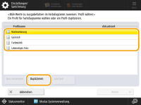 Wählen Sie eines der vorhandenen registrierten Profile aus, und drücken Sie <Duplizieren>. Geben Sie dann den Profilnamen ein, und drücken Sie <OK>.