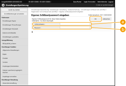 Geben Sie den Schlüsselnamen und das Passwort ein, und klicken Sie auf [OK].