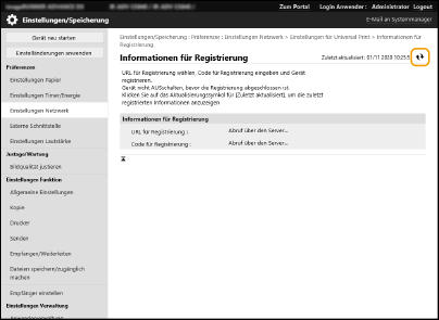 Klicken Sie auf [Registrieren...] in [Registrierstatus].