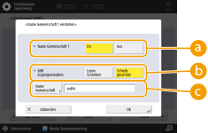 Zugewiesene Gemeinschaft ist eine voreingestellte Gemeinschaft für die Geräteverwaltungssoftware von Canon. Um die Zugewiesene Gemeinschaft zu verwenden, drücken Sie <Zugewiesene Gemeinschaft einstellen>. Um eine allgemeine Gemeinschaft anzugeben, drücken Sie <Name Gemeinschaft 1 einstellen> oder <Name Gemeinschaft 2 einstellen>. Näheres hierzu finden Sie im Handbuch der von Ihnen verwendeten Software.