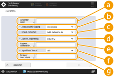 Legen Sie eine Kombination aus Authentifizierung und Verschlüsselung fest. Wählen Sie <Auth. Ja/Verschl. Ja>, <Auth. Ja/Verschl.Nein> oder <Auth.Nein/Vrschl.Nein>.