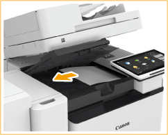 Si el papel asoma por la bandeja de salida del finisher, sáquelo suavemente tirando en el sentido de la flecha.