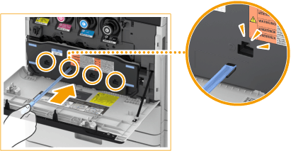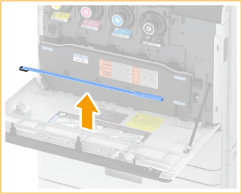 Devolva o bastão de limpeza para a tampa frontal da unidade principal com a ponta virada para a esquerda.
