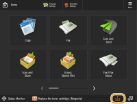Quando o toner está perto de acabar ou já acabou, uma mensagem é exibida lembrando você de preparar um novo cartucho de toner ou realizar uma substituição de cartucho. Prepare um novo cartucho de toner ou realize uma substituição de cartucho de acordo com a mensagem exibida.