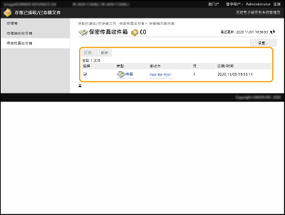 选择[保密传真收件箱]并单击所需“保密传真收件箱”的编号。