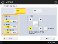 <설정>을 누르고 사용자 정보를 강제 인쇄할 기능을 선택합니다.