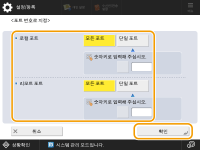 IPSec을 적용할 포트를 지정할 때 포트 번호를 사용하려면 <포트 번호로 지정>를 누릅니다. IPSec을 모든 포트 번호에 적용하려면 <모든 포트>를 선택합니다. IPSec을 특정 포트 번호에 적용하려면 <단일 포트>를 누르고 포트 번호를 입력합니다. 포트를 지정한 후, <확인>을 누릅니다. 본 기기의 포트는 <로컬 포트>에 지정하고 통신 피어의 포트는 <리모트 포트>에 지정합니다.