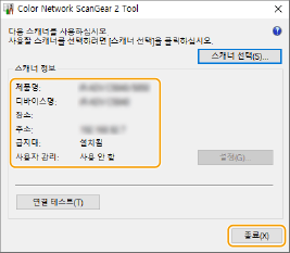 Color Network ScanGear 2를 사용할 수 있는 시스템 환경에 관한 정보는 Color Network ScanGear 2의 도움말을 참조하십시오. 사용 중인 Windows 운영 체제 버전에 따라 이 단원에 표시된 Color Network ScanGear 2 화면이 실제 화면과 다른 경우도 있습니다. Color Network ScanGear 2를 시작하려면 TWAIN을 준수하는 응용 프로그램이 필요합니다. 각 응용 프로그램의 도움말을 확인하여 TWAIN 지원 여부를 알아보십시오. |