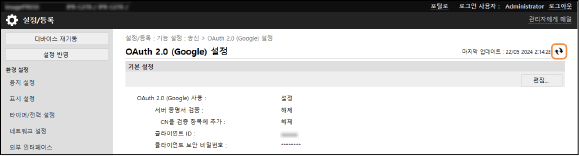 기기에서 날짜 및 시간이 올바르게 설정되었는지 확인합니다. 날짜/시간 설정OAuth 2.0 인증 설정을 구성한 후 날짜 및 시간 설정을 변경하는 경우 OAuth 2.0 인증 설정을 다시 구성하십시오. |