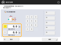 使用數字鍵按 <X> 或 <Y> 輸入各邊的長度。 ![]() 如果將按鈕 <S1> 的常用紙張尺寸註冊到 <S5>,只要按一下即可叫用。註冊尺寸不限的紙張(自訂尺寸紙張) | |