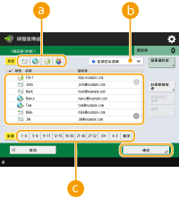 在 <狀態確認> 畫面上,您可以查看已傳送文件的狀態。此畫面讓您可以在檢查狀態後再次傳送傳真或取消傳送。檢查已傳送和接收文件的狀態和日誌