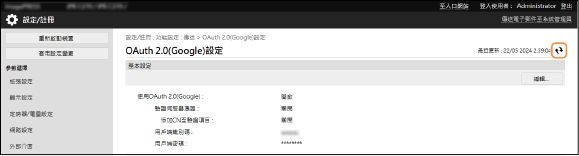再次顯示 [OAuth 2.0(Google)設定] 畫面。