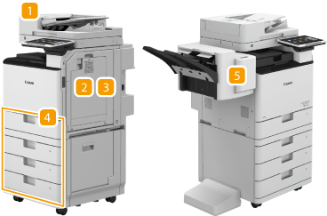 Per obtenir informació sobre les ubicacions on es produeixen els encallaments de paper i el mètode per eliminar-los, vegeu el diagrama i les referències següents.