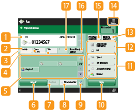 Zobrazí název zadaného cíle, faxové číslo, počet cílů a aktuální čas.