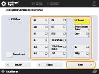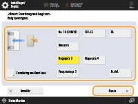 2 | Vælg kuverttypen. ![]() Hvis du vil registrere en kuvert i brugerdefineret format, skal du trykke på <Brugerdefineret> <Næste> og trykke på <X> eller <Y> for at angive siden. Brug derefter taltasterne til at angive længden på den angivne side. |