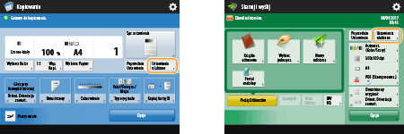 Możesz zmienić przyciski ustawień wyświetlane na ekranach podstawowych funkcji (dla kopiowania, faksowania i skanowania). Istnieje również możliwość wyświetlania innego, spersonalizowanego ekranu podstawowych funkcji dla każdego zalogowanego użytkownika.