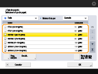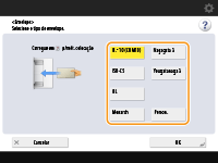 1 | Carregue em <Envelope>. O tipo de papel envelope não pode ser selecionado no ecrã Detalhes <Tipo de papel>. Para selecionar o tipo de papel envelope, registe o tipo de papel em <Gravar papel favorito (tabuleiro multifunções)>, depois carregue em <Papel favorito> no passo 2 o botão ao qual o tipo de papel envelope foi registado <OK>. Gravar o formato e o tipo de papel utilizado frequentemente para o tabuleiro multifunções |