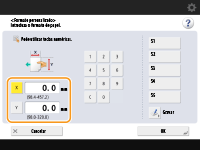 Carregue em <X> ou <Y> para introduzir o comprimento de cada lado com as teclas numéricas. ![]() Se gravar o formato de papel que utiliza frequentemente nos botões <S1> a <S5>, pode aceder-lhes com um só toque. Gravar papel de formato livre (Papel de formato personalizado) | |